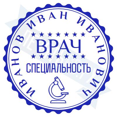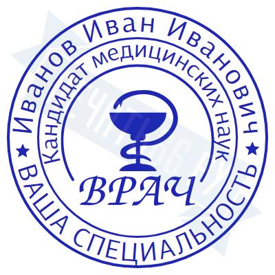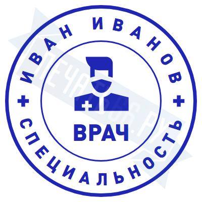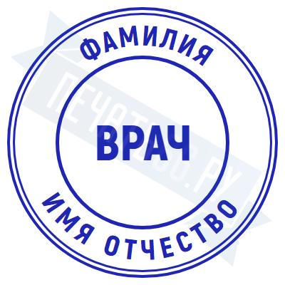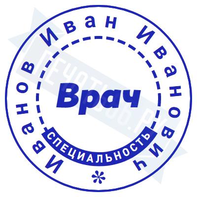 - Печать врача на металлической оснастке Врача карманная D23 с подушкой по цене 1901 рубль и еще 46 видов печатей врача