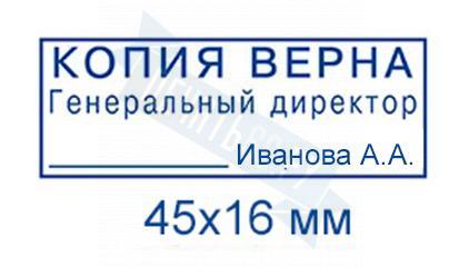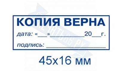 - Штамп копия верна на карманной оснастке 47x18 по цене 1198 рублей и еще 8 видов штампов копия верна